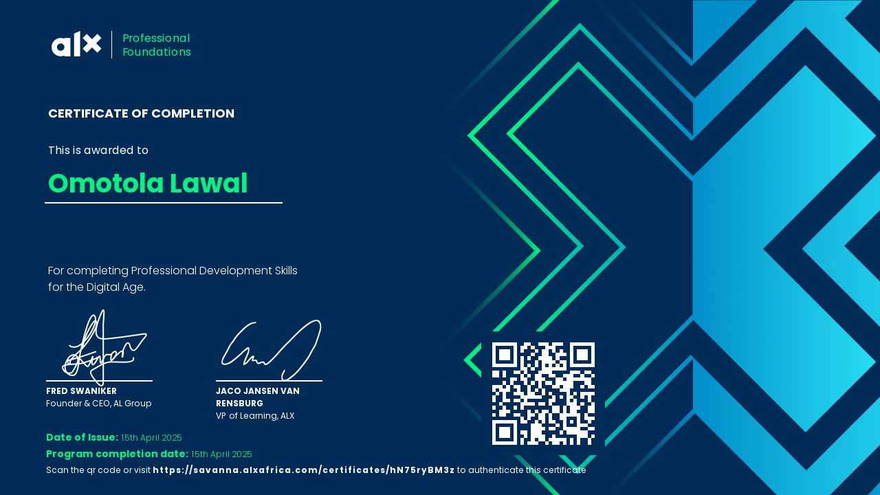 I recently completed the Professional Development Skills for the Digital Age program from ALX. This experience has significantly enhanced my analytical, technical, and professional capabilities — reinforcing my commitment to continuous growth and my drive to remain relevant and impactful in today’s data-driven world.